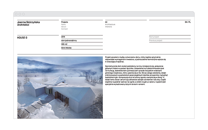 Joanna Skórzyńska runs her architectural studio since 2014. It implements interior designs as well as comprehensive architectural projects. At the request of JSA, we created the identification and website presenting the company’s services and portfolio.